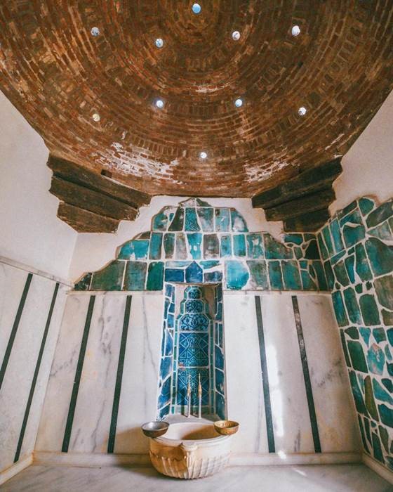 Gerçek bir hamam, hem de tarihi Rum köyünde. Kubbesinde fil gözleri var. Duvarlarda camgöbeği renginde Selçuklu Çinileri, mermerler her daim sıcak. Gizli penceresinden kuş bakışı köy manzarası.